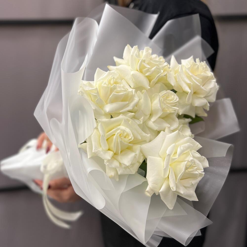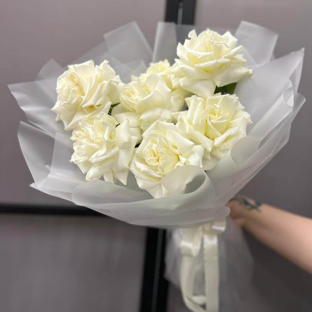 Французская роза – 7 шт.Пленка матовая – 9 шт.Лента атласная – 2 шт.