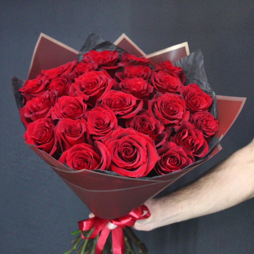 Роза Эквадор Премиум – 25 шт.Тишью – 2 шт.Пленка матовая – 2 шт.