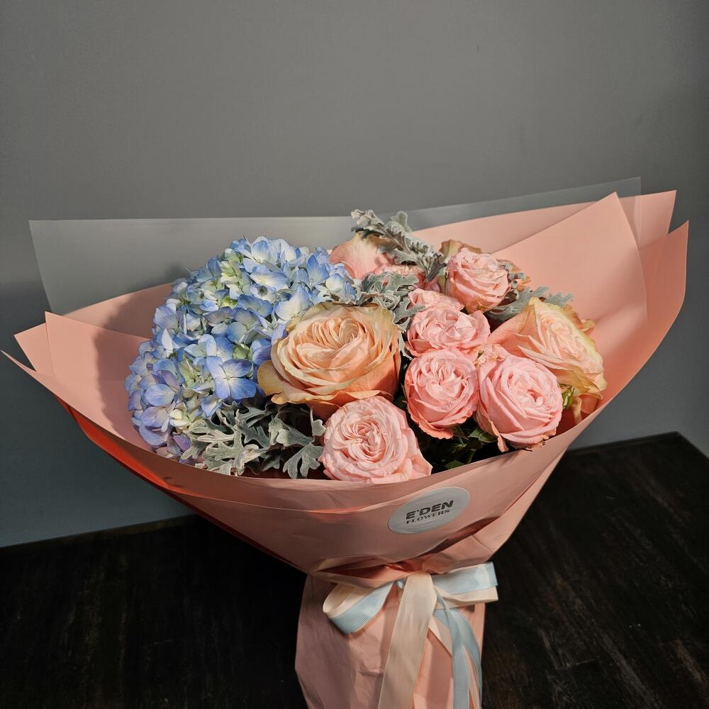 Гвоздики, Кустовые розы, Пионовидные розы, Розы