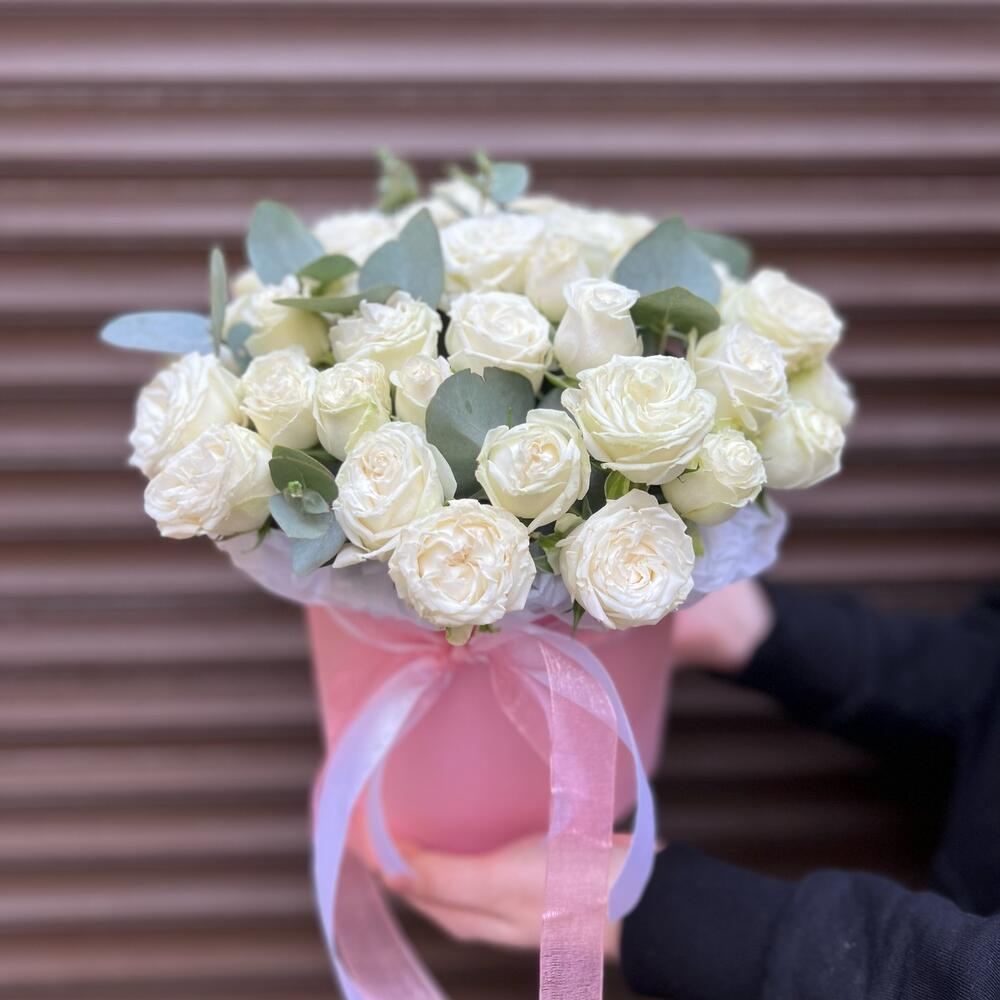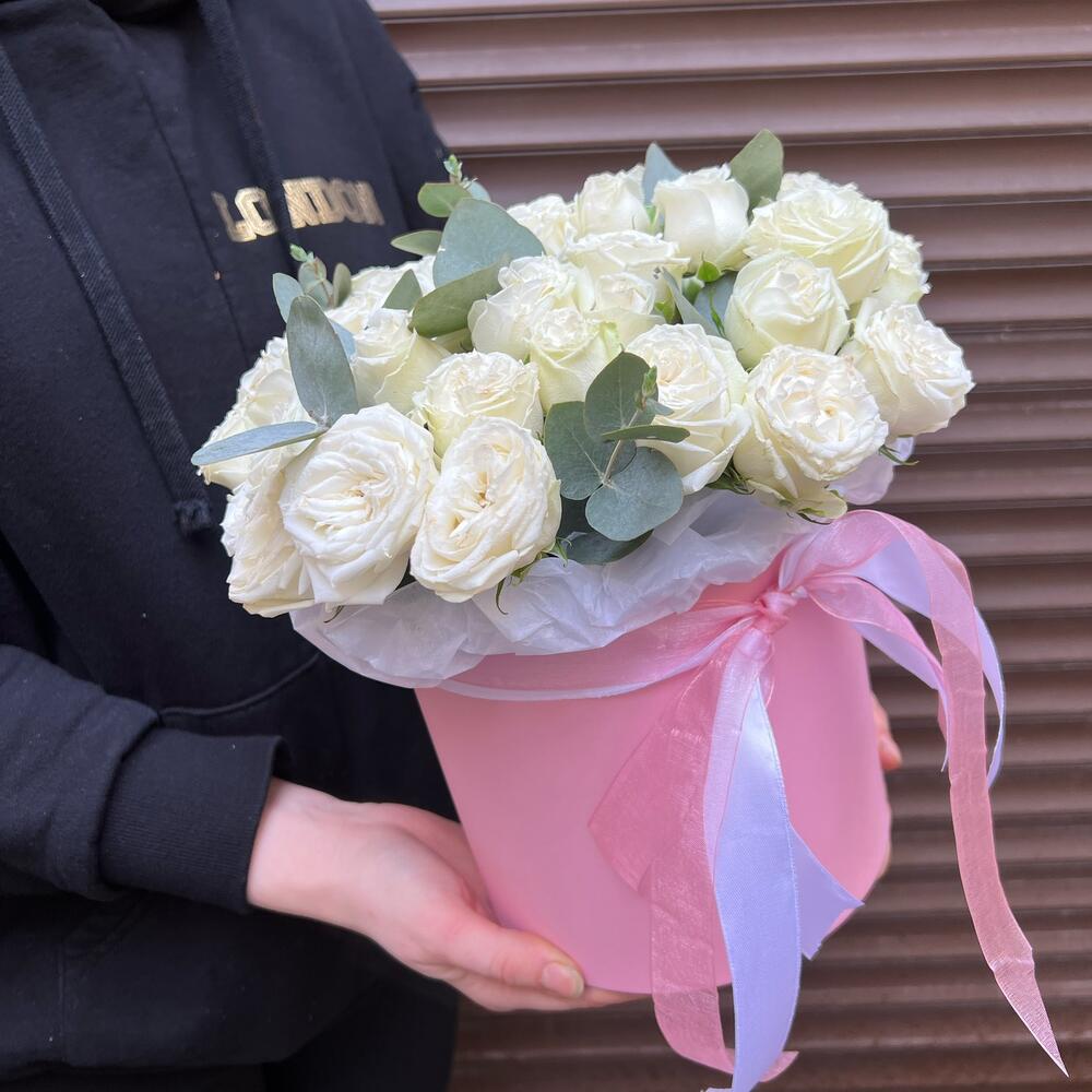 Пионвидные розы в шляпной коробке