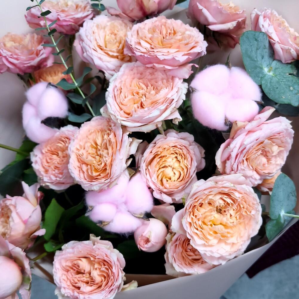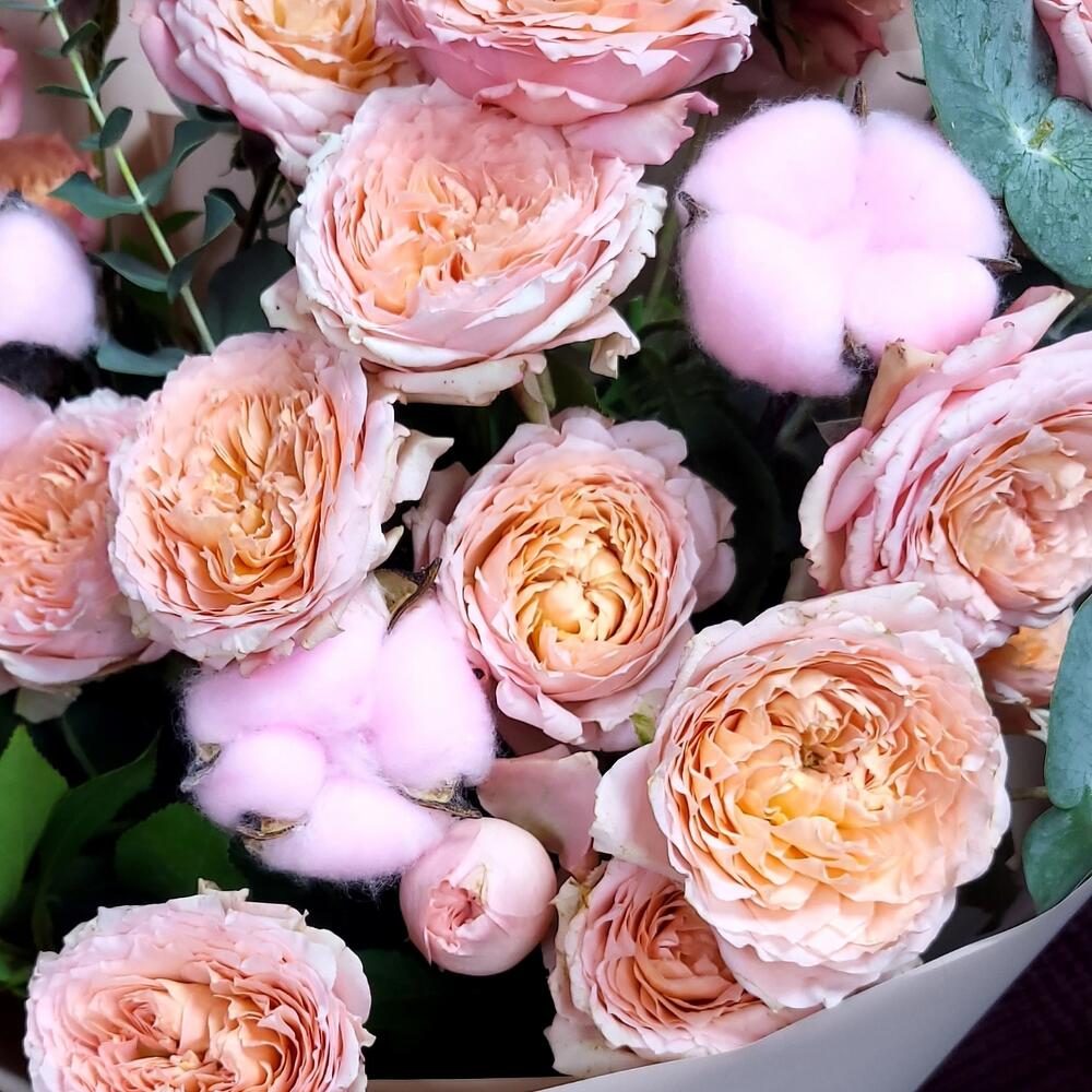 Гвоздики, Кустовые розы, Пионовидные розы, Розы