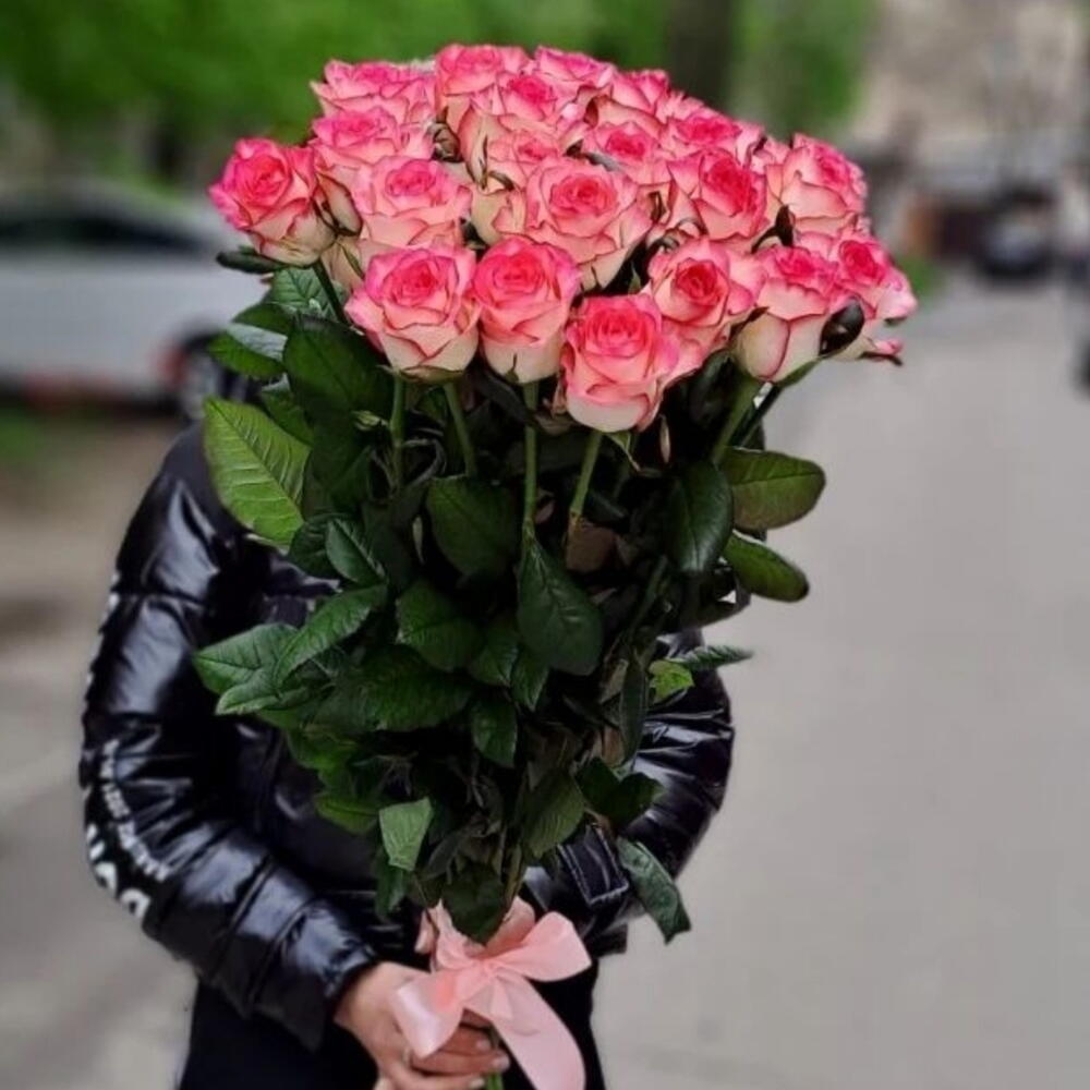 Роскошный букет из двухцветной розы Джумилия подойдёт для доставки самым любимым и дорогим людям. Наши флористы с радостью соберут, а курьеры доставят красивый букет от Вашего имени. По Вашему желанию количество может быть увеличено.