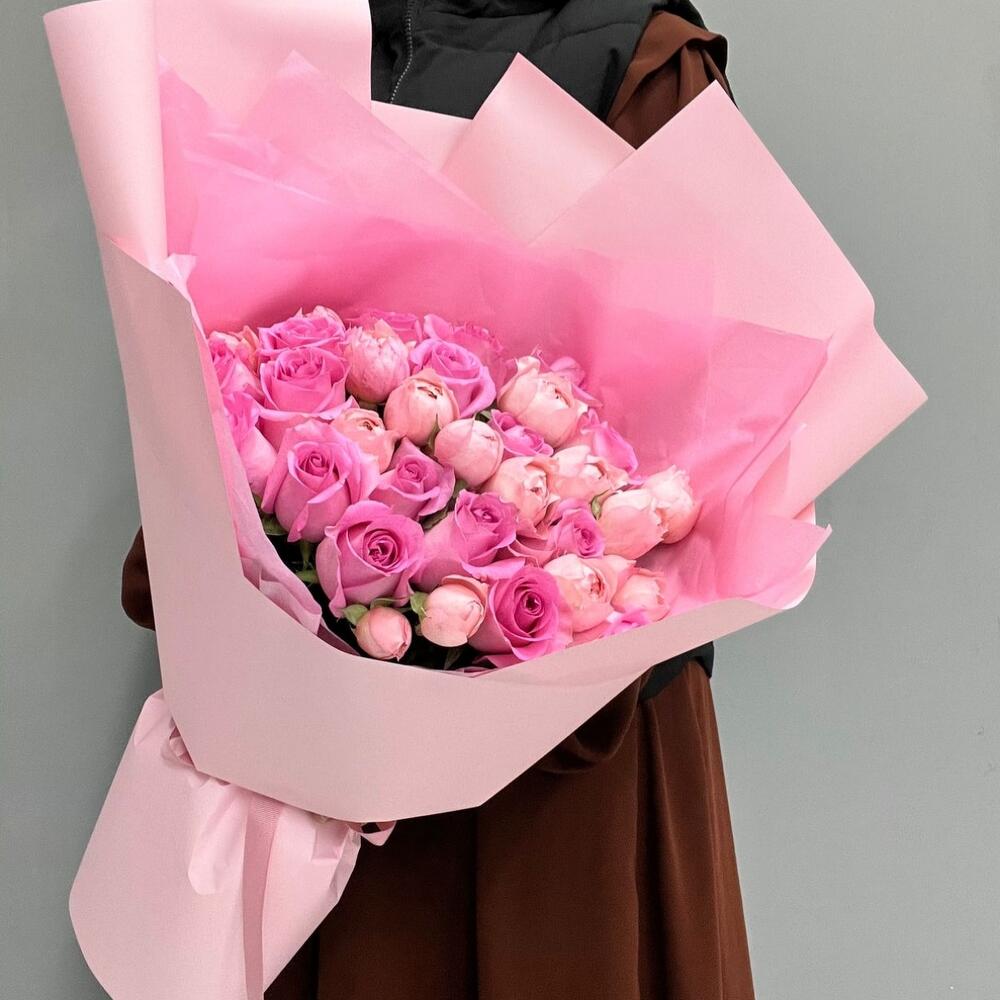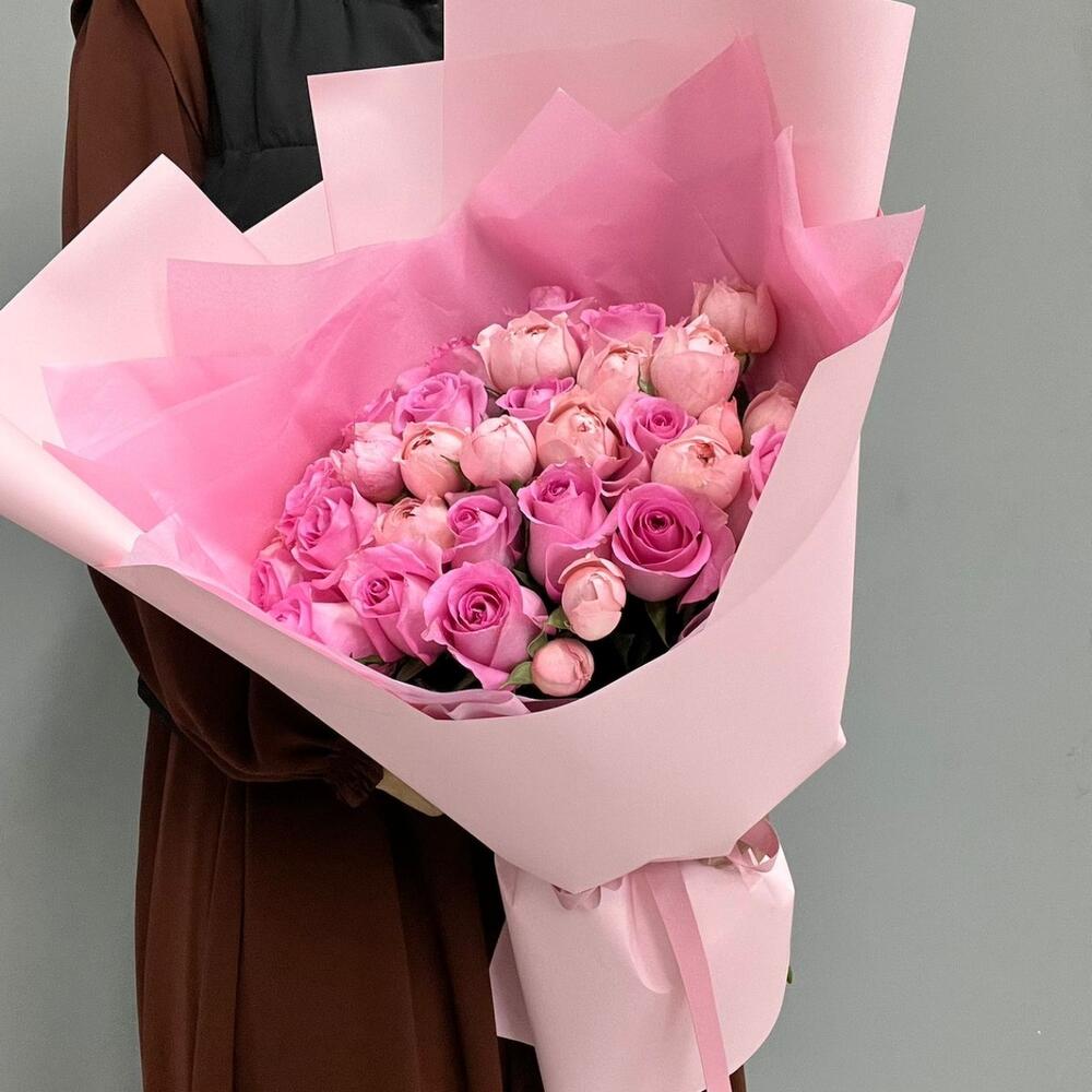 Гвоздики, Кустовые розы, Лизиантусы, Пионовидные розы, Розы