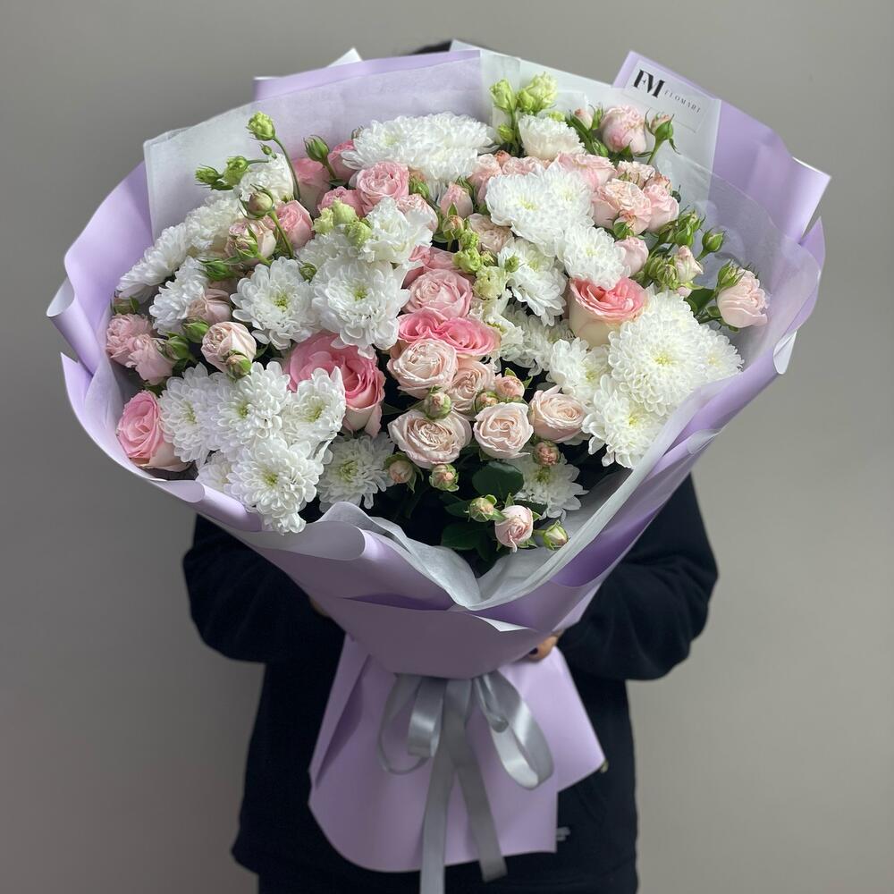 Гвоздики, Кустовые розы, Лизиантусы, Пионовидные розы, Розы