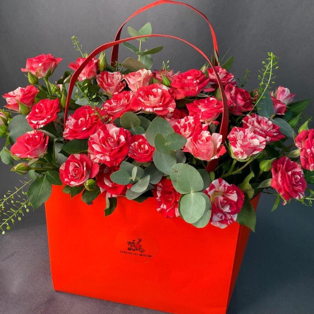 Гвоздики, Кустовые розы, Лизиантусы, Пионовидные розы, Розы
