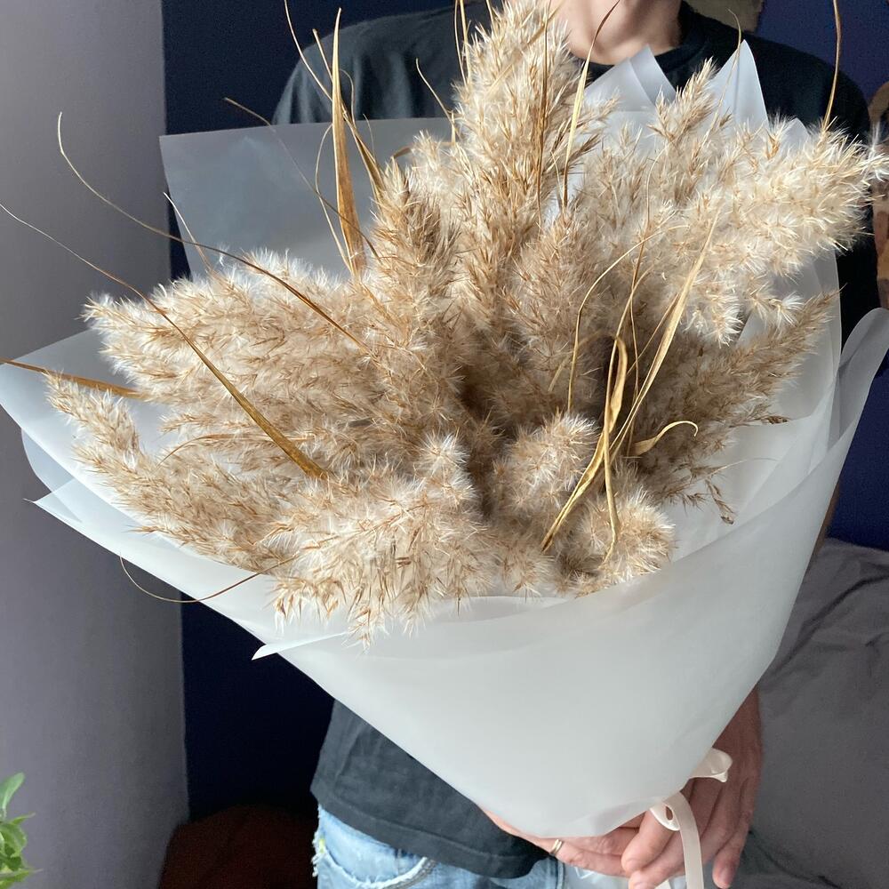 Сухоцветы – 15 шт.Матовая пленка – 5 шт.Лента атласная – 1 шт.