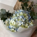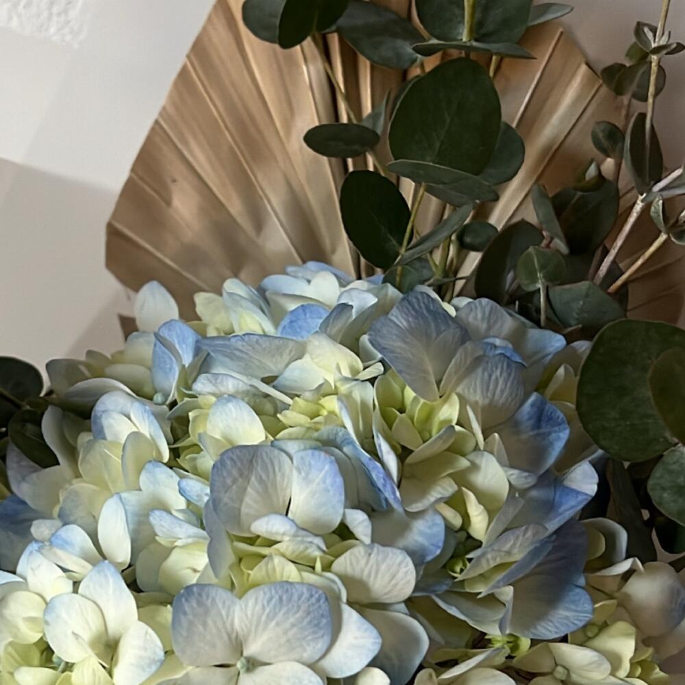 Монобукет из голубой гортензии с эвкалиптом