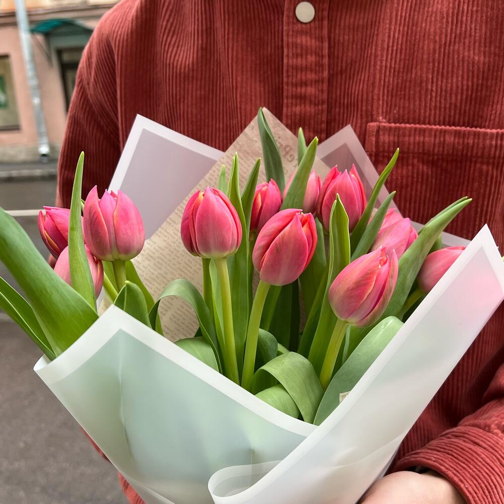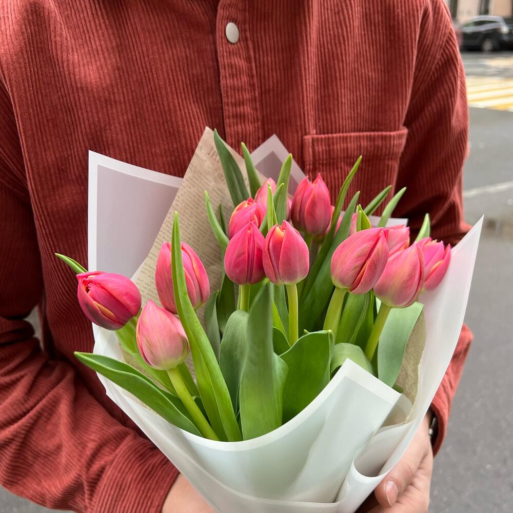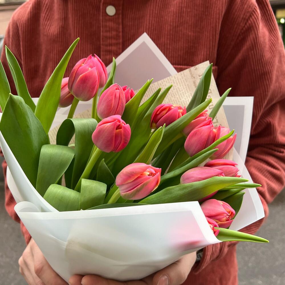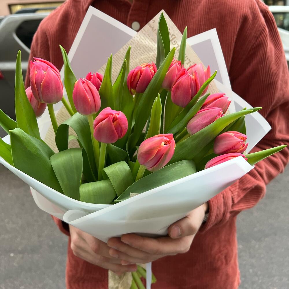 Тюльпан розовый – 15 шт.упаовкка дизайнерская – 2 шт.