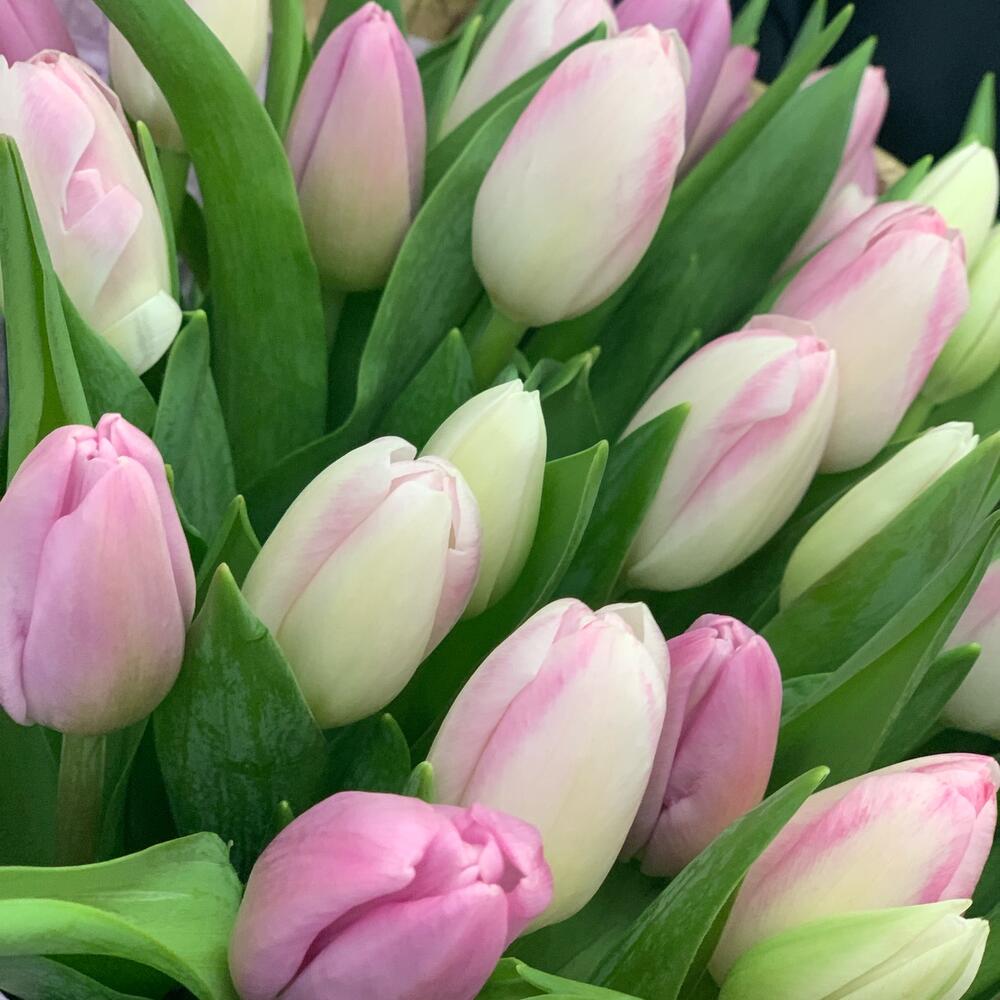 Тюльпан – 51 шт.Дизайнерская упаковка – 2 шт.Атласная лента – 1 шт.